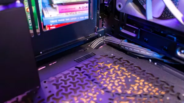 The corner steel bars, while distinctive, complicate access to the system. The review unit’s configuration is future-proof for years, but routine maintenance requires opening the case. The rear left bar obstructs the glass side panel, making removal tricky and risking scratches. Removing the bars, secured with allen bolts, is possible but adds unnecessary effort for a gaming PC.